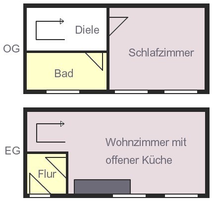 - kleine Diele, Wohnzimmer mit offener Küche